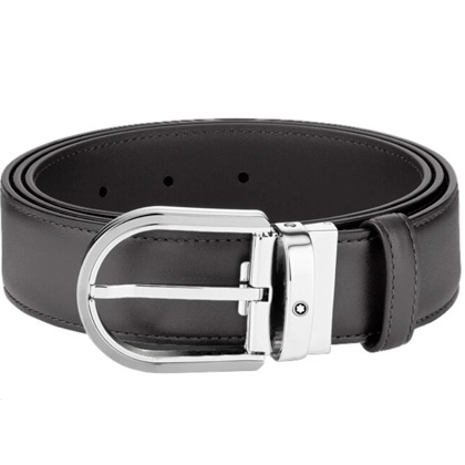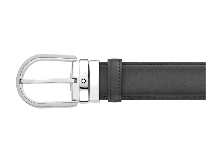 Кожаный ремень с пряжкой в форме подковы серого цвета 35 мм от магазина премиальных ручек Premium Pens в Подольске.